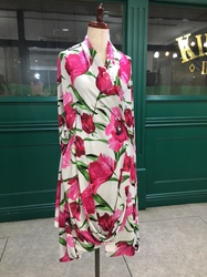 大胆な色と柄ゆきを 地色のグレーが上手に抑えています。女性ならでは、こんな装いで周りを明るくして差し上げたい。。。。