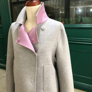 ▲フランス ハーフコート 裏地ボタンホール赤生地使用